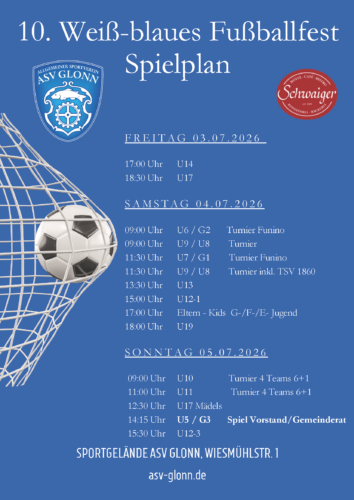 Anbei veröffentlichen wir die offiziellen Einladungen zu den Abteilungsversammlungen sowie zur Hauptversammlung des ASV Glonn. Die Einladungen werden fristgerecht vor den jeweiligen Terminen bereitgestellt.