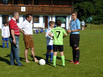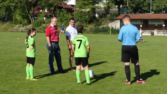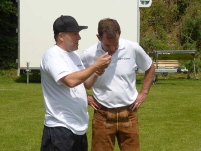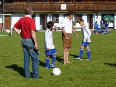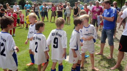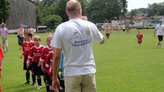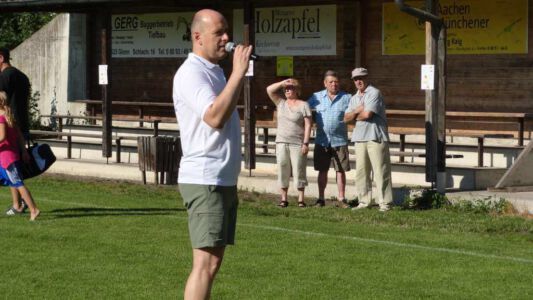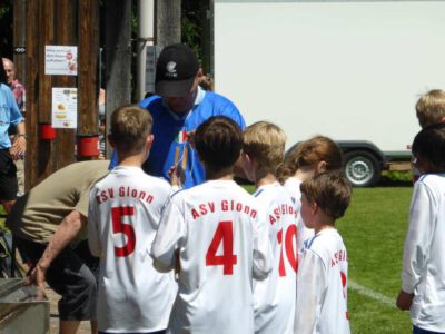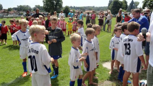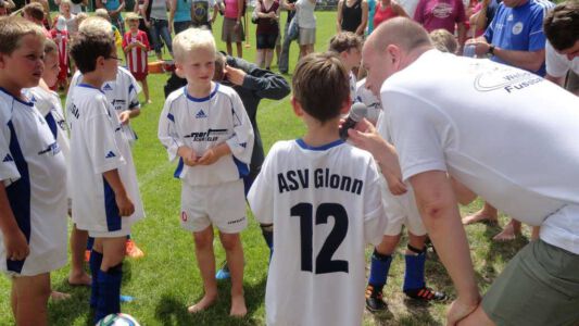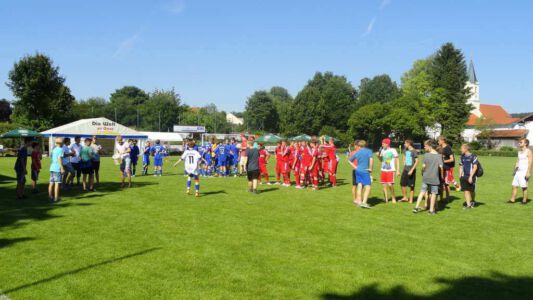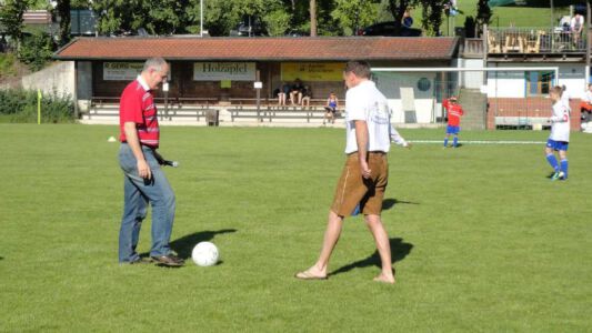 Weltmeisterliche Stimmung und beste Temperaturen herrschten auf dem Gelände des ASV Glonn bei der dritten Auflage des weiß-blauen Fußball-Festes. Pünktlich um neun Uhr führten am Samstag Bürgermeister Josef Oswald und Sponsor Joachim Stefer von BMW Maier den Anstoß aus.