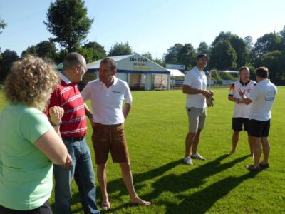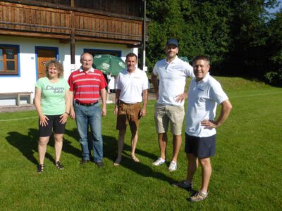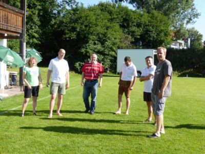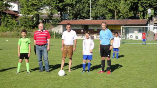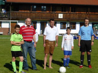 Bei sommerlichen Temperaturen eröffnet Glonns 1. Bürgermeister Josef Oswald (2. v. links) und Sponsor Joachim Stefer von BMW Maier (3. v. links) das 3. Weiß-blaue Fussball-Fest des ASV Glonn.