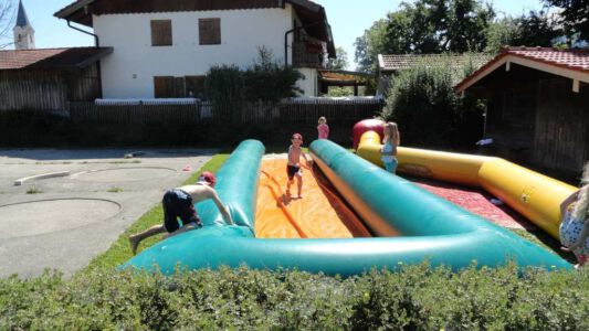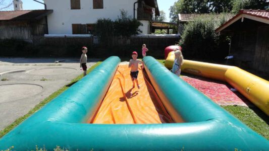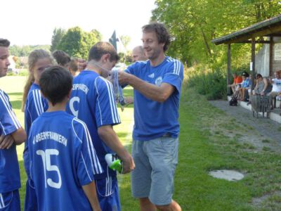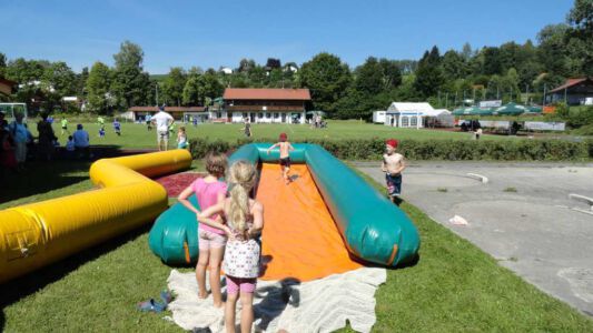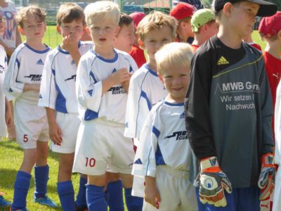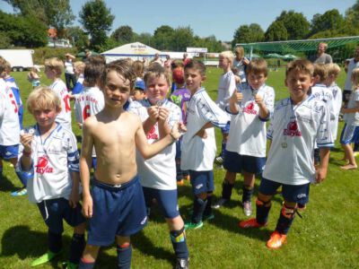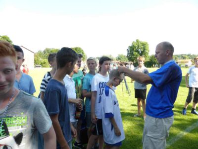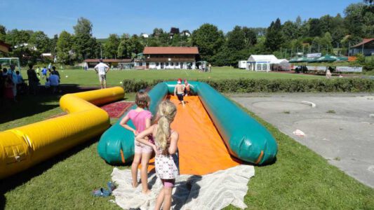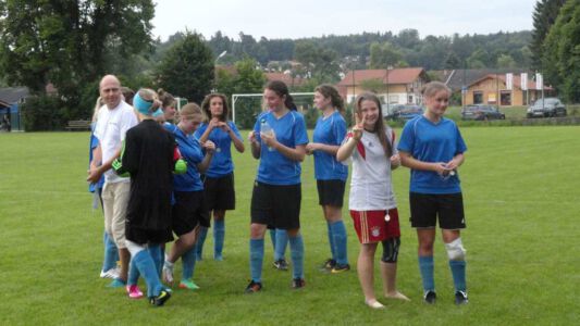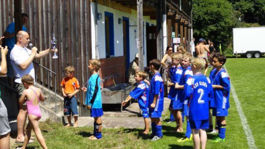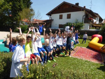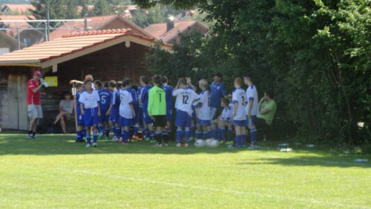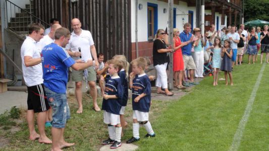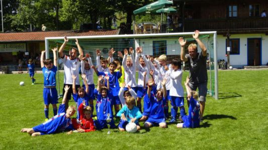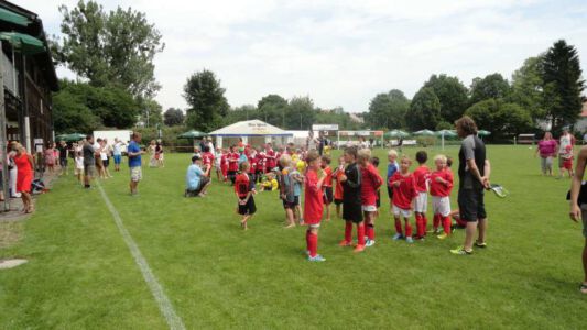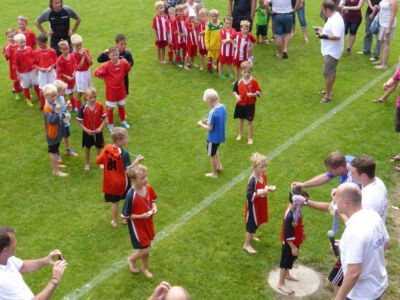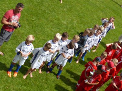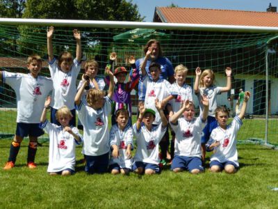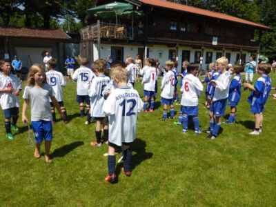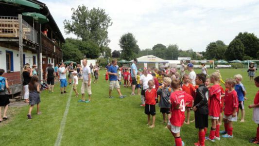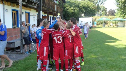 „Der Spaß am Sport war das Ziel – und das Ziel wurde voll erreicht“, freute sich Werner Endisch vom ASV. Wie viel Spaß die Kinder und Jugendlichen an den Blitzturnieren hatten, habe sich in der gelösten Atmosphäre und der Freude am Spiel gezeigt. Erfreulich fand das ASV-Fußballteam auch die Teilnahme der Nachbarverein TSV Oberpframmern, TSV Moosach, SV Bruck, ATSV Kirchseeon, SF Aying und SpVgg Thalkirchen – viele wollen nächstes Jahr wieder kommen. Die beiden Vormittage standen ganz im Zeichen der Blitzturniere der E- und F-Junioren. Eltern, Omas und Opas verfolgten die packenden Spiele der Jüngsten trotz der brasilianischen Temperaturen. Die B-Juniorinnen absolvierten ein Testspiel. Zu einer tragischen Verletzung eines Akteurs kam es bei den B-Junioren. Ein Spieler aus Haag bekam einen Ball in den Unterleib und musste ärztlich versorgt werden. „Alles Gute und gute Genesung“, wünschte Vorsitzende Elke Spitzenberger im Namen des ASV Glonn. Am Samstagnachmittag kickten dann die C-Junioren auf dem Großfeld. Trotz der hohen Temperaturen gab es viele interessannte Begegnungen. Die C-Junioren des TSV haag (Kreisklasse) gingen als verdiente Gewinner aus dem Turnier hervor. Richtige Verlierer gab es an diesem Wochenende sowiso nicht, denn erstens bekamen alle Spieler eine Medaille und die Erstplatzierten einen Pokal. Und zweitens war viel Rahmenprogramm geboten: Inklusive Abkühlung im Wassereimer und auf der Wasserrutsche, Eis, Getränke, Wurstsemmeln, Pommes und Gummibärchen sowie köstlicher Kuchen samt Kaffee. Ein großer Dank der Veranstalter ging an alle Helfer sowie die Schiedsrichter Franz Ehmann, Tobias Bredenhöller, Manfred Franz und Detlef Wulf sowie an das Team des BRK Glonn. Der Samstagabend klang mit Live-Musik im Zelt aus, das Wirtspaar des ASV-Vereinsheimes, Angelika und Thomas Holzbauer, versorgten die Gäste mit Köstlichkeiten vom Grill. Für die Glonner Organisatoren steht jetzt schon fest: In 2015, wieder am 3. Juliwochenende (17. bis. 19.) findet das vierte weiß-blaue-Fußball-Fest statt. Christine Gerneth