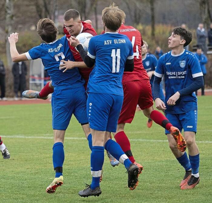 TSV Zorneding II – ASV Glonn 2:2 Rudelbildung in der Luft (v.l.): Zornedings (rot) Felix Mühlhölzl und Nicolas Englmann gegen die Glonner Dennis Mini, Jonathan Ametsbichler und Tomislav Friedl. © SRO Nach drei Niederlagen in Serie hat Tabellenschlusslicht ASV Glonn wieder etwas Zählbares einfahren können. Im Kreisklasse-Auswärtsspiel beim TSV Zorneding II sicherten sich die Glonner zumindest einen Punkt. „Es war sicher gut für unsere Moral, mal wieder etwas geholt zu haben, auch wenn uns ein Sieg in unserer Situation sicher mehr gebracht hätte“, erklärte Glonns Spartenleiter und Abwehrchef Jakob Stefer. [...]
