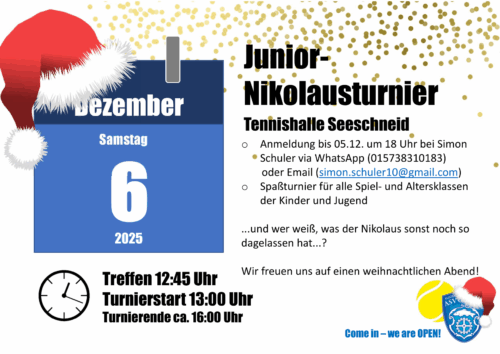 Nikolausturnier – Tennishalle Seeschneid am Samstag 6. Dezember Werner Endisch2025-11-03T05:58:27+01:002. November 2025|