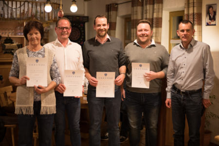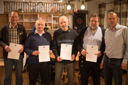 Ehrung für 60-jährige Mitgliedschaft: v. links, Johann Tutschka, Helmut Gross, Michael Grass, Herbert Ramberger, ASV Vorsitzender Jo Stefer