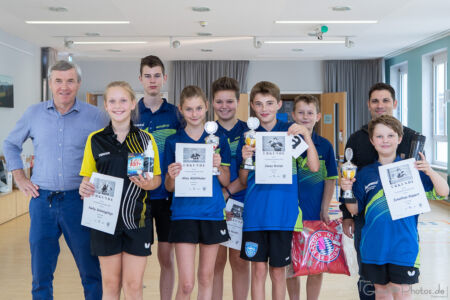 Den Anfang machte am Vormittag der Nachwuchs. Sieben Mädchen und Jungen spielten ihre Titel im System jeder gegen jeden aus. Bei den Mädchen konnte sich Alina Mühlthaler vor Lisa Rieder und Nelly Schengelaja durchsetzen. Die Jungendkonkurrenz wiederum entschied Jonathan Gippert vor Andreas Vogl für sich, während bei der Jugend Jonas Ristok Markus Mühlthaler auf den zweiten Platz verwies. Im Anschluss an die spannenden Spiele gab es für alle Mädels und Jungs kleine Sachpreise sowie eine Urkunde mit dem eigenen Bild in Action. Den Erstplatzierten wurde zudem von Abteilungsleiter Robert Wäsler der Siegerpokal überreicht.
