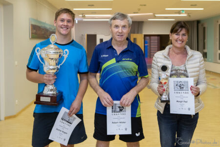 „Siegerehrung Erwachsene“ Vereinsmeister Bastian Wagner, Abteilungsleiter Robert Wäsler, Vereinsmeisterin Margit Paul