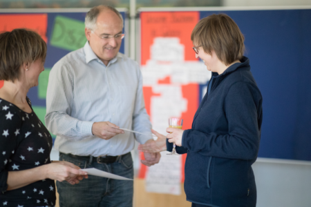 Abteilungskassier Katrin Müller, Abteilungsleiterin Meike Ehlers und Bürgermeister Josef Oswald