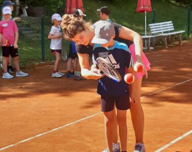 Trotzdem haben alle Teilnehmer*Innen erfolgreich die ersten Tennisschläge, wie bspw. Vor- & Rückhand, Aufschlag oder Volley und verschiedene Ballübungen kennengelernt.