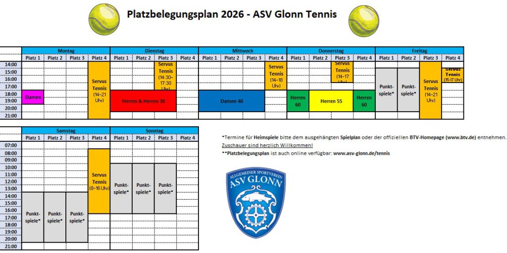 Platzbelegungsplan 2024 – ASV Glonn Tennis